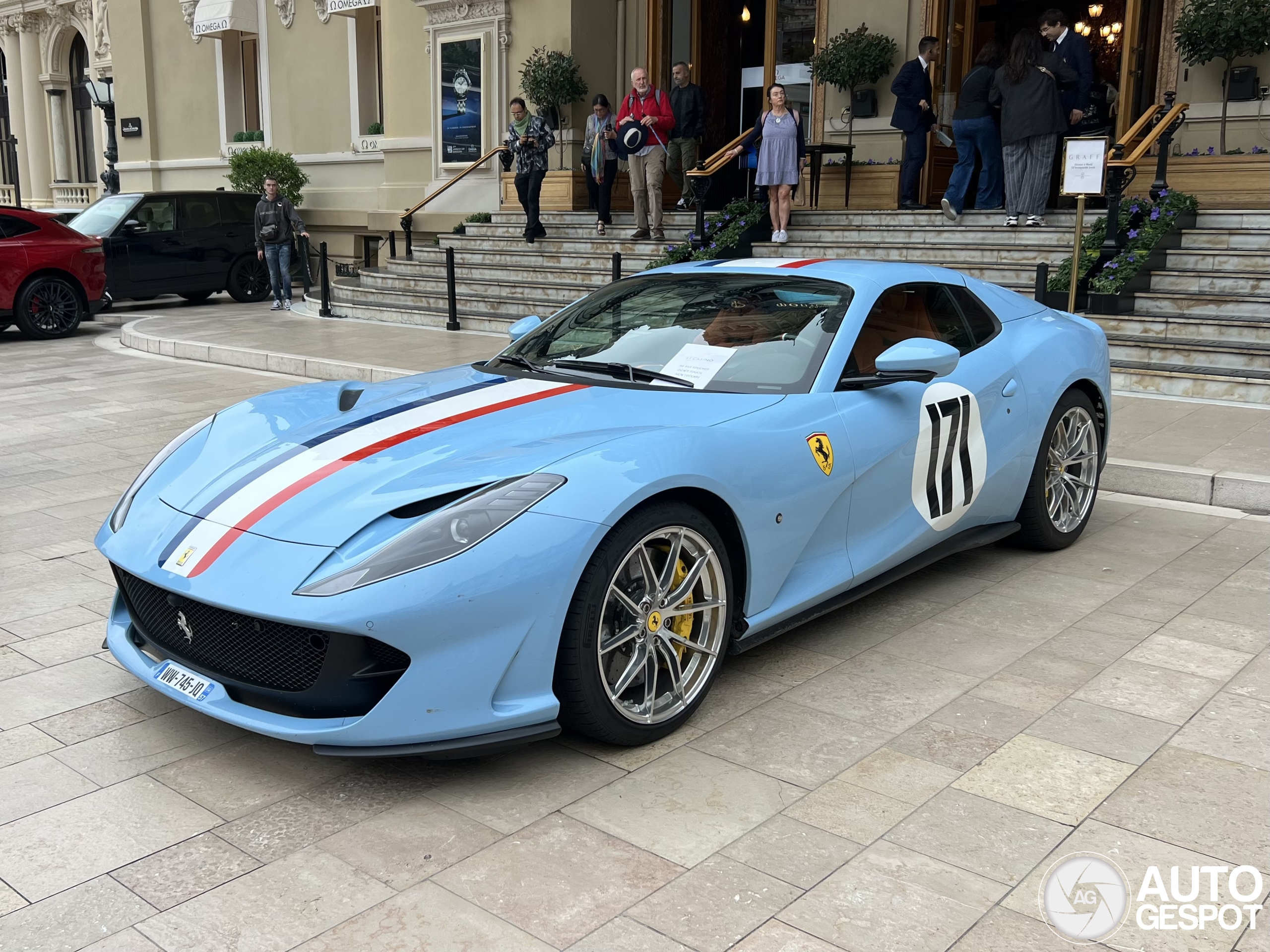 What an insane spec! The color seems to be Azzurro La Plata which works really well with the French tricolor stripe, the painted shields, chrome wheels and the orange interior! It is a complete Tailor Made spec and between the seats there is a plaque to inform which car the spec is inspired by: the 1956 Ferrari 250 GT Berlinetta Competizione 'TdF'! There are actually a lot more Ferrari models which feature similar specs too! Combo with a DBX707, F12 Onyx F2X Longtail, F8, Urus and TT RS Roadster! Photos from 12.10.