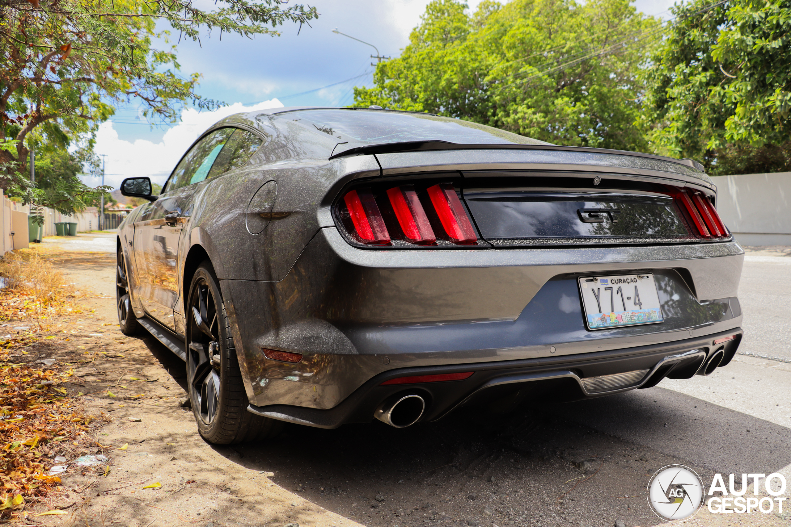 Op Curaçao kan je de spotwaardige auto's overal tegenkomen. Deze ingetogen Mustang stond langs de weg bij een dierenarts midden in een woonwijk.