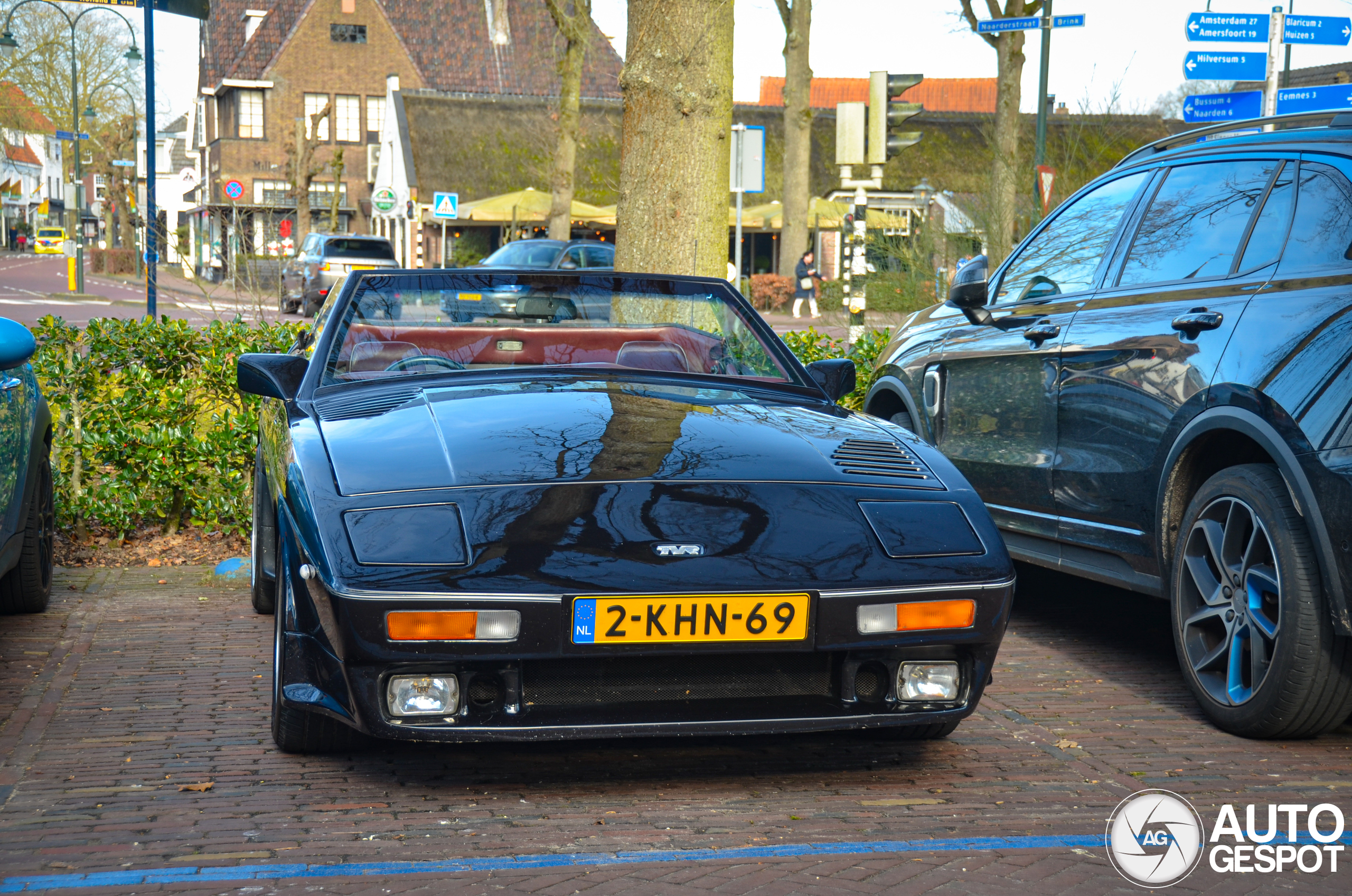 Die rode bekleding maakt de auto wel af zoo vet TVR